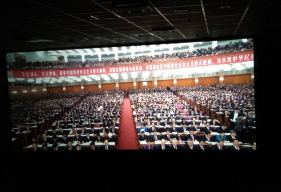 组织全体师生党员在中影东方影城观看红色电影《厉害了,我的国》。