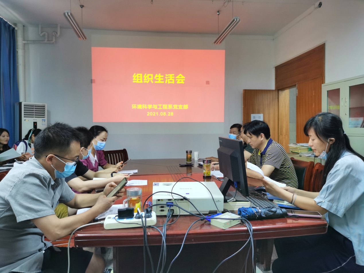 2021年8月28日上午,环境科学与工程系全体党员在能环楼316召开了党史学习教育专题组织生活会,支部正式党员和预备党员共19人全部参加了会议,学院党委谢文平副书记列席指导。会前支部已组织学习了《习近平总书记在党史学习教育动员大会上的重要讲话》、《习近平总书记在庆祝中国共产党成立100周年大会上的重要讲话》、《习近平总书记考察安徽重要讲话指示精神》、《中国共产党简史》等相关资料。会上由支部书记孟海玲同志向全体党员同志通报了2020年年底组织生活会整改落实情况,并且汇报了本次组织生活会会前征求意见建议情况,随后代表支部班子对支部工作进行了剖析,认真总结过去,提出不足,并对未来的发展提出了整改措施。