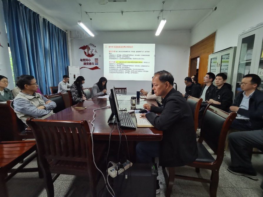 2024年5月6日,能源与环境学院党委书记谢文平来到他所联系的环境科学与工程系教工党支部,为全体党员和教师上党课,主要讲解《中国共产党纪律处分条例》(以下简称《条例》)。