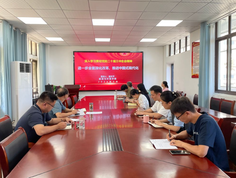 2024年9月18日上午,能源与环境学院在能源楼325会议室召开党的二十届三中全会精神宣讲会。宣讲会由学院党委书记谢文平主讲,学院各支部书记参加了宣讲会。