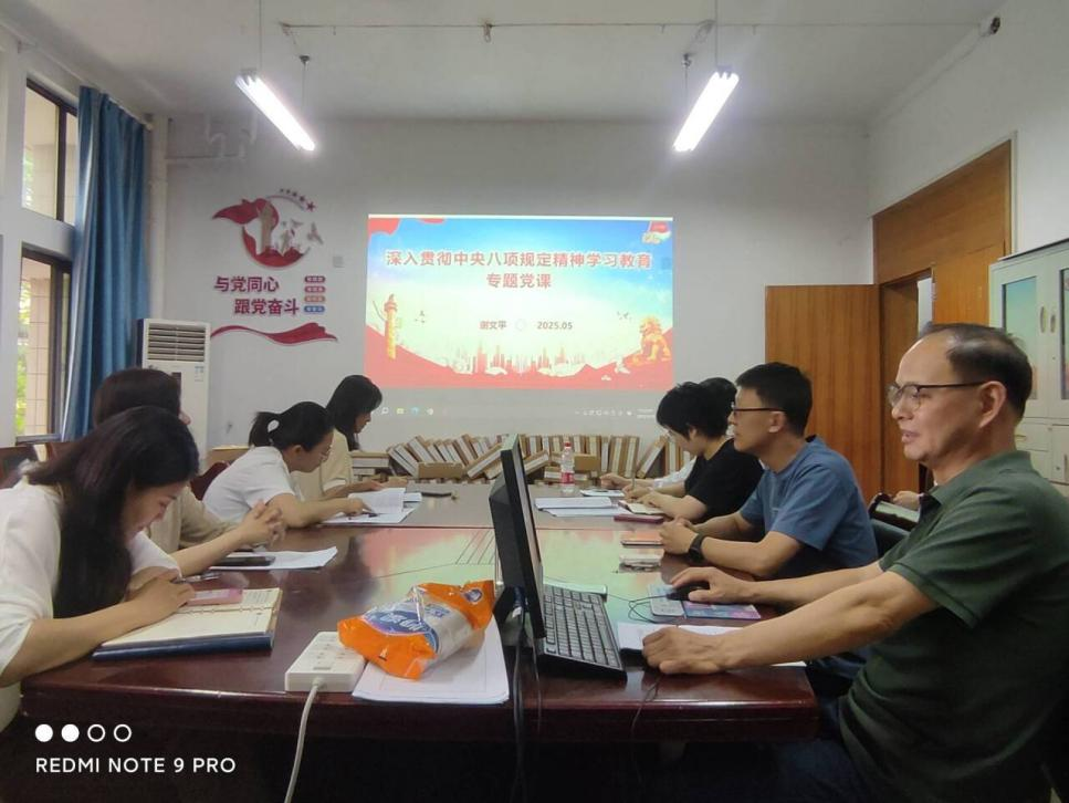 此次党课,深化了环境系全体教师对中央八项规定精神的认知,强化了纪律与规矩意识,为学院营造风清气正的育人环境夯实基础。师们表示,将以此次学习为契机,在教育教学中严守纪律线,不越红线,以严谨的工作作风引导学生树立正确的人生观、世界观和价值观。   撰稿:郭丽娜         审核:练建军 刘翠娟 谢文平