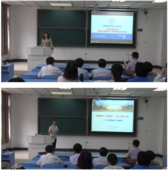此次公开观摩示范课为张丽徽老师主讲的《太阳能利用技术与装置》和王诗生老师主讲的《环境监测》,学院院长钱付平教授、全体教师、教学督导组专家和部分学生代表参加了本次公开观摩示范课。两位老师分别从不同角度展示了课程思政的开展方式及成效,并通过一节课程展示了如何挖掘思政元素,如何将专业知识与思政元素无缝对接,启发了学生的思考。课程准备充分、目标明确、思路清晰,注重师生交流,强调了学生学习的主动性和参与度。