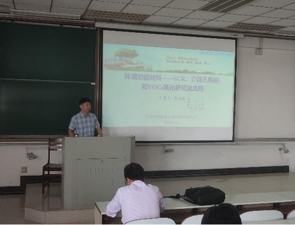 作题为《环境功能材料——SCR、介微孔吸附和VOCs氧化研究及应用》的学术报告,由能源与环境学院院长钱付平主持,环境科学与工程系研究生、本科生和部分老师参加了本次报告会。