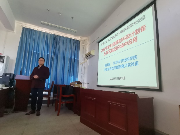 2021年11月9日上午,东华大学徐桂银教授应邀来能源与环境学院,为师生做了题为“功能纤维与隔膜材料设计制备及其在能源环境中的应用”的报告。报告由能源与环境学院钱付平院长主持,能源与环境学院部分教师、研究生和本科生聆听了报告。