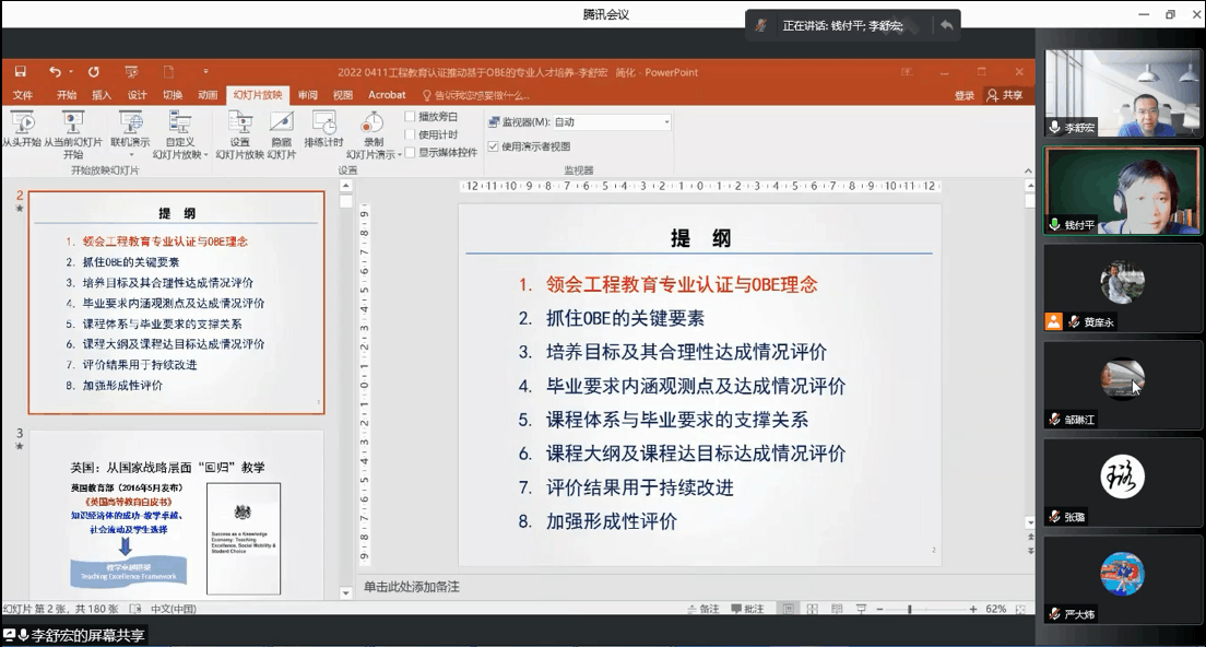 做了题为“基于OBE理念的专业人才培养--工程教育认证”的专题讲座,受疫情影响,讲座通过线上会议方式进行,由院长钱付平教授主持,能动系全体教师和部分环境系教师近50人聆听了报告。