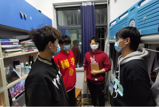 学院党委副书记谢文平带领全体辅导员深入到全院所有学生宿舍,对宿舍内存在的安全隐患和卫生状况进行了全面检查。要求同学们注意用电安全,不得使用违章电器,做好宿舍通风消毒和环境卫生,及时清理生活垃圾。坚持做好封闭管理期间每日健康监测,做到异常情况早发现,不隐瞒,不谎报漏报,不能存有丝毫麻痹思想和侥幸心理。此外,检查还对学生在校情况进行了全院晚点名核实,每位在校学生本人现场进行了签名确认。