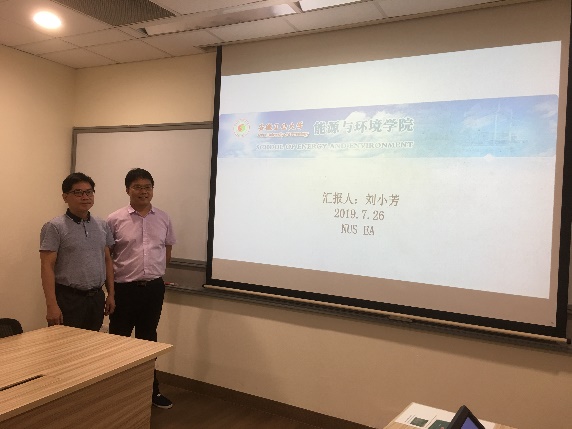 刘小芳副院长首先代表学校、学院对新加坡国立大学工学院的周到安排表示诚挚谢意,随后介绍了学校的基本情况,特别是能源与环境学院的专业方向、科学研究、学科建设、学术交流等,同时也借此机会介绍了学校的人才政策和国际办学等,希望双方能在国际项目合作、国际学术交流、国际人才合作培养等方面建立紧密合作。