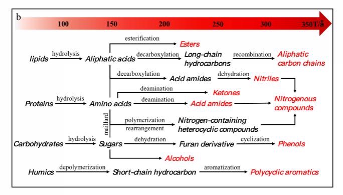 本研究提出了一种新的连续集总反应动力学模型,以准确揭示蓝藻在热溶萃取各阶段的控制机理,并总结了有机物潜在的演化机理。结果表明,热溶萃取成功分离出蓝藻中的氮和磷。溶质具有高碳和挥发性含量,几乎不含灰分,并形成富含磷的残留物。连续集总反应模型动力学的最低拟合度为94.5%,表明该模型效果良好。残渣的解聚在200-350 °C之间占主导地位,而溶质分解在400 °C占主导地位。溶质中含氮化合物来源于蛋白质脱羧或脱氨生成酰胺以及氨基酸与还原糖反应生成氮杂环化合物,可用于含氮化学品的制备。