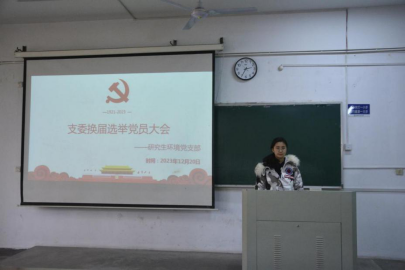 会议在庄严的国歌声中拉开帷幕。首先上一届委员会作工作报告,回顾总结支部工作。通过选举办法后进行换届选举,选举产生了新一届支部委员会。李琳琳、马骁、荣菲当选为新一届研究生环境党支部支委,新一届支委选举李琳琳担任支部书记。