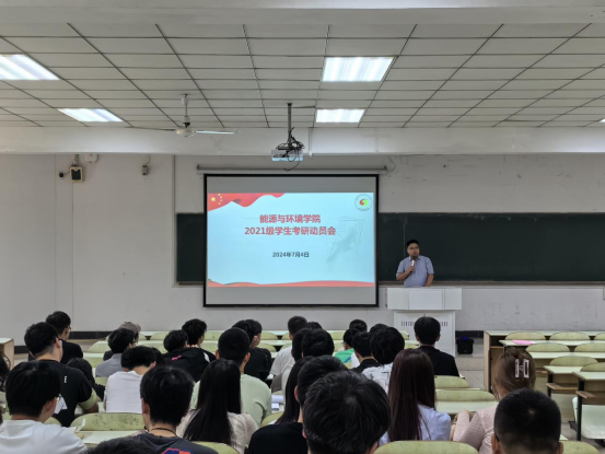 为进一步浓厚学院考研学习氛围,帮助学生明确考研目标、提增考研信心,能源与环境学院7月4日在教三南103召开2025届学生考研宣讲动员会,学院党委副书记、副院长卫军帅主讲,各年级辅导员以及2021级全体学生参加会议。会议由辅导员黄乐远主持。