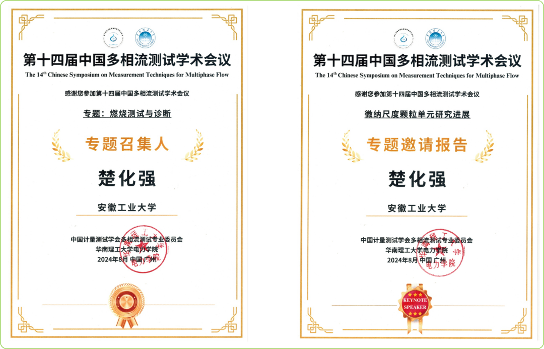 由中国计量测试学会多相流测试专业委员会主办、华南理工大学承办的第14届中国多相流测试学术年会于2024年8月16-18日在广州越秀国际会议中心举行。学院楚化强教授及博士生许年参加了此次会议,期间还参加了多相流测试专业委员会会议。