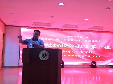 周密安排了启航工程“大学第一课”系列课程,并于9月12日晚上在佳山校区大学生活动中心正式开讲,由学院党委副书记、副院长卫军帅为全体新同学开上学生“安全教育第一课”和“校规校纪教育第一课”。