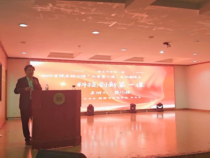 2024年10月15日晚上,能源与环境学院在佳山校区教三南203开展启航工程“大学第一课”系列课程之科技创新第一课,邀请能源与环境学院副院长楚化强为2024级全体新生授课。此次活动旨在引导学生们关注前沿科技、培养创新意识、争做科技创新的先锋。