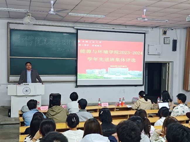 为加强学生班集体建设,增强大学生集体观念、协作意识和团队精神,努力为广大学生营造有利于成长成才的学习和生活环境,推动学风建设迈上新台阶,能源与环境学院于10月20日晚在教一117开展了院先进班集体评选。此次评选活动由院学生会学习部承办,院党委副书记、副院长卫军帅亲临指导,各年级辅导员担任评委,2024级全体班委到现场观摩学习。