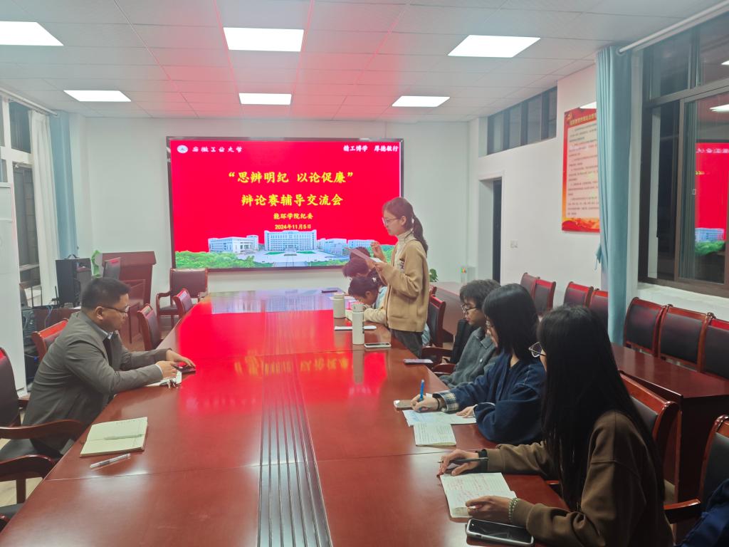 “思辨明纪 以论促廉”大学生辩论赛的通知》相关要求,为加强对学院辩论赛的组织领导和审核把关,能源与环境学院纪委于11月5日晚上在能源楼325专题开展了辩论赛辅导交流会。会议由2024级辅导员范浩东主持,学院党委副书记、纪委书记卫军帅莅临指导,院辩论队全体队员参与。