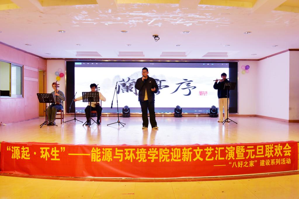为丰富学生的校园文化生活,深入打造学院家文化,能源与环境学院于12月30日晚上在佳山校区大学生活动中心成功举办“八好之家”建设系列活动之迎新文艺汇演暨元旦联欢会。学院各年级学生参演,2024级辅导员吴飞、范浩东、院团委及学生党支部相关负责老师以及2024级全体学生到场参加活动。