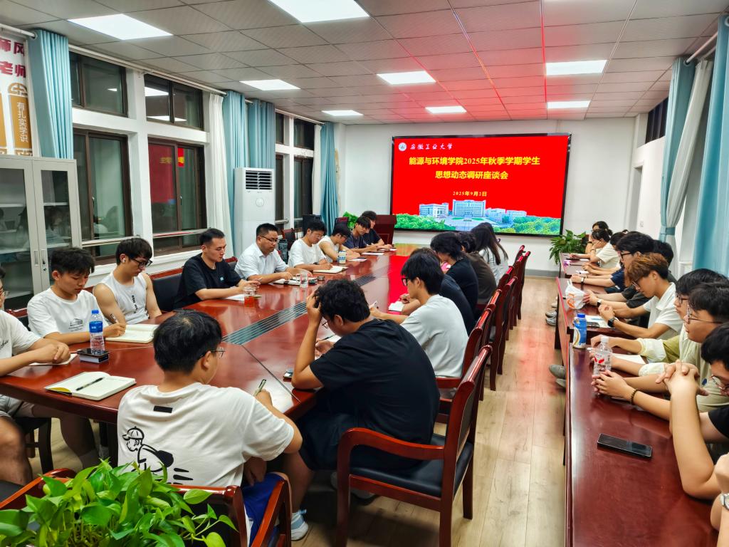为准确把握新学期学生思想动态,增强思想政治工作的针对性和实效性,夯实“一站式”学生社区相关建设工作,能源与环境学院于9月2日在能源楼325会议室召开了2025年秋季学期学生思想动态调研座谈会。会议由院团委书记沈厚发主持,院党委副书记、副院长卫军帅参加活动,各年级主要学生骨干及相关辅导员参会。