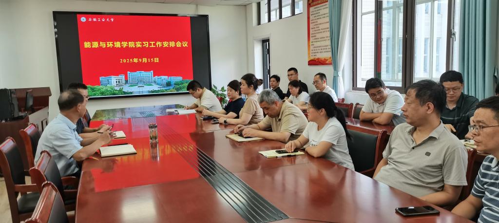 能源与环境学院在能源楼325会议室召开实习工作安排会议,全面部署新学期认识实习与生产实习相关工作。学院党委书记谢文平、院长钱付平、教学副院长盛广宏出席会议,各系负责认识实习和生产实习的教师参加会议。会议由盛广宏主持。