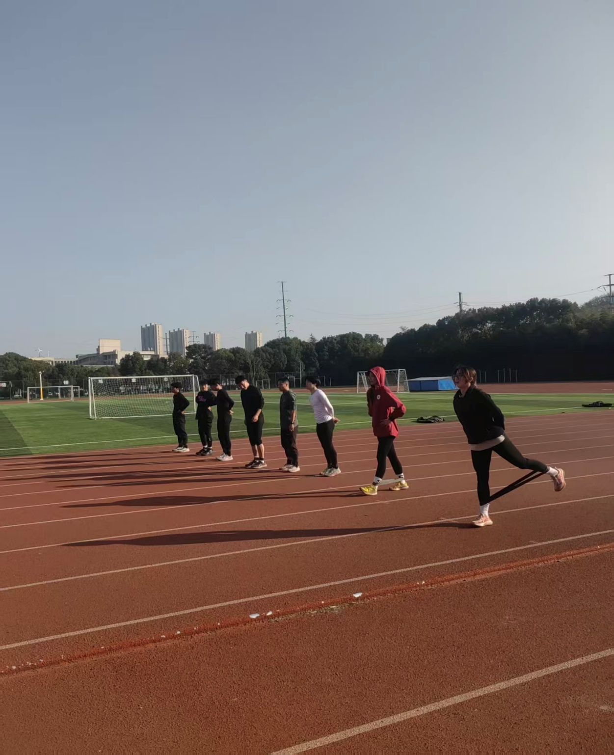 早上8点,金色的阳光照亮了田径队郭晓艳和王庭辉在跑道热身的身影。寒风中,他们呼出的白气与晨雾交织,一次次起跑、加速、冲刺,磨砺着速度与耐力。“想利用寒假系统提升爆发力,在明年的比赛中再创佳绩”获得安徽省大学生体育联赛400米栏亚军的郭晓艳说到,“虽然想家,但突破自我的感觉更棒。”