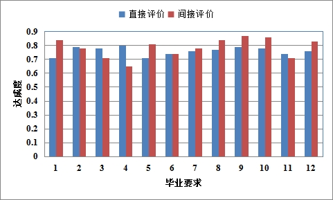 毕业要求达成度采用直接评价和间接评价相结合的方法,包括基于课程目标达成度直接评价法以及基于毕业生问卷调查和用人单位调研的间接评价法。