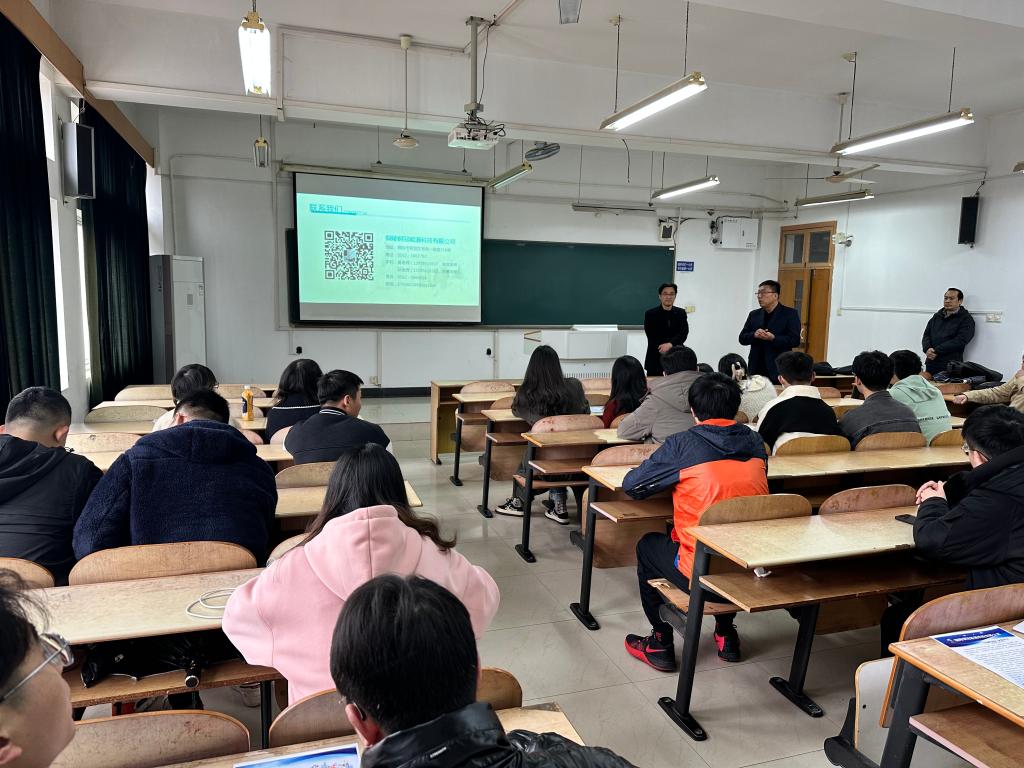 宣讲会上,铜陵铜冠能源科技有限公司战略发展部主任张保存介绍了公司的发展前景、培训方案、晋升渠道、福利待遇及岗位需求情况。公司经理江志东和副经理吴子昊耐心解答同学们薪资待遇和工作时间等诸多关于岗位的具体问题,近20名同学现场投递了求职简历。