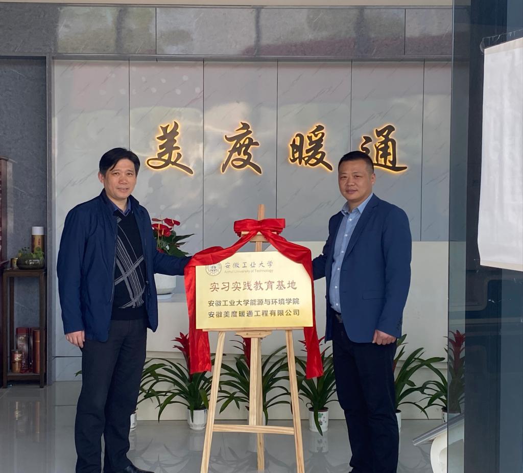 为进一步加强校企交流合作,提升人才培养质量,3月12日上午,能源与环境学院院长钱付平,院党委副书记、副院长谢文平等一行6人前往马鞍山市当涂经济开发区与安徽美度暖通工程有限公司、奥克斯家电制造马鞍山工厂签订实习实践教育基地合作协议并举行基地揭牌仪式。安徽美度暖通工程有限公司总经理夏俊峰、安徽奥克斯智能电气有限公司家电制造马鞍山工厂总经理赵亚兵等参加了座谈交流。