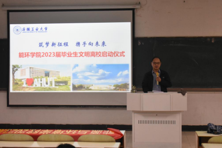6月5日下午,能源与环境学院2023届毕业生文明离校启动仪式于佳山校区教三南103举行。院党委副书记、副院长谢文平,毕业班辅导员王稳定,以及全体2023届毕业生参加了本次活动。